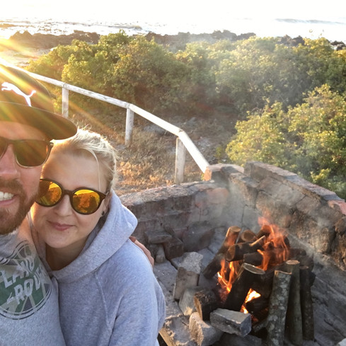 The Disco was parked closer to our braai, positioned at an angle that sheltered us from the wind. We spent the evening around the campfire, enjoying a tasty supper of lamb chops, green salad and a dram or two. At last, we were content with our arrangements - all thanks to the Disco!